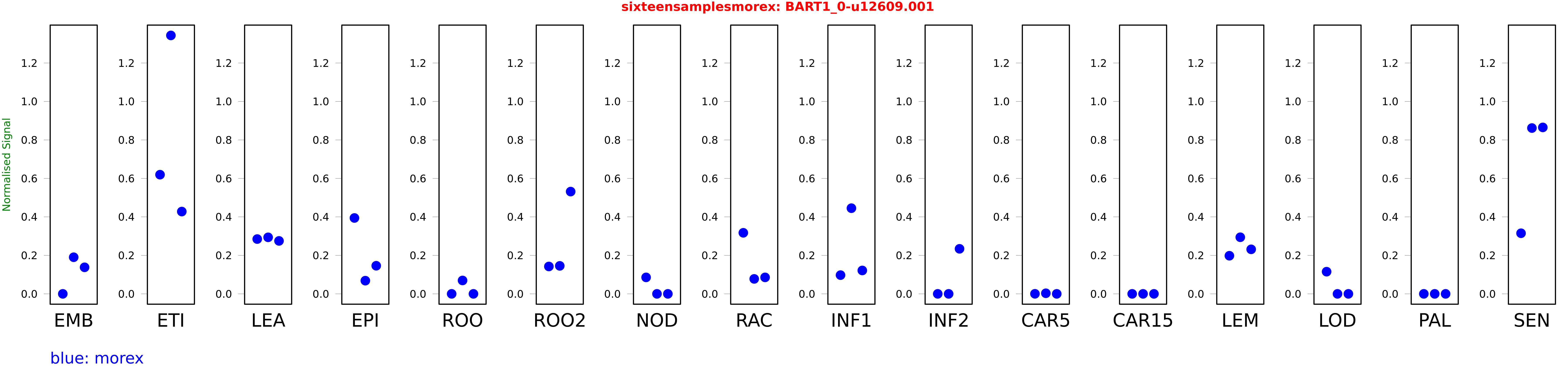 These TPM values were generated by using the RNA-seq data from a 16-tissue experiment in Morex (published here) were calculated using Salmon (version Salmon-0.8.2) using BaRTv1.0-QUASI as the reference transcript dataset. Click here for more information about the RNA-seq experiment and materials