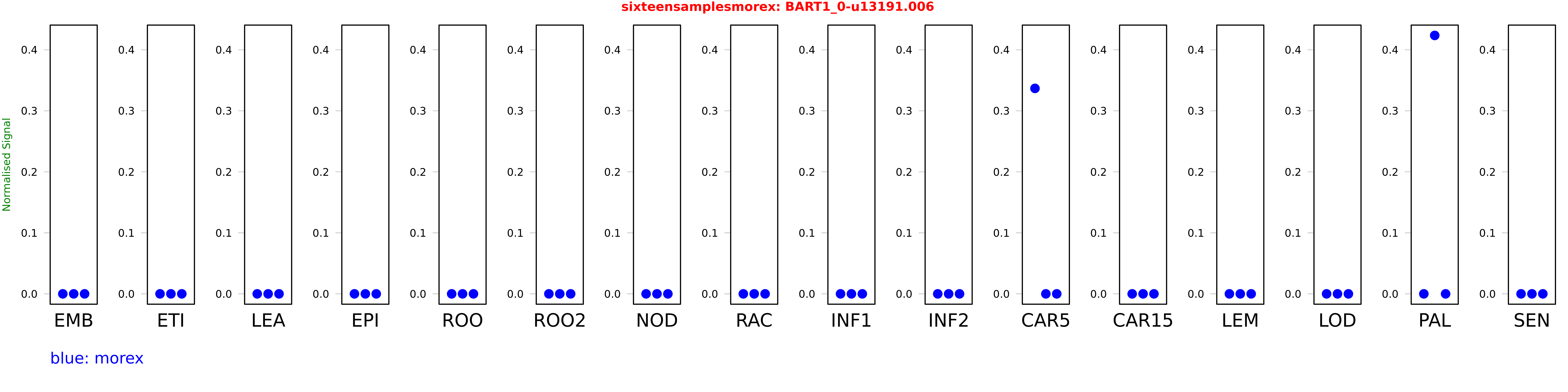 These TPM values were generated by using the RNA-seq data from a 16-tissue experiment in Morex (published here) were calculated using Salmon (version Salmon-0.8.2) using BaRTv1.0-QUASI as the reference transcript dataset. Click here for more information about the RNA-seq experiment and materials