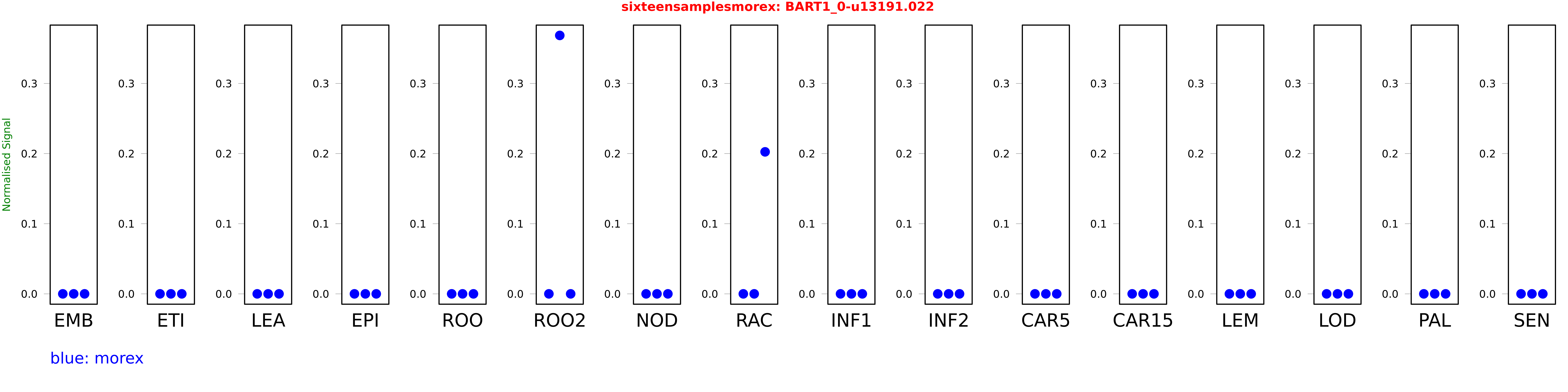 These TPM values were generated by using the RNA-seq data from a 16-tissue experiment in Morex (published here) were calculated using Salmon (version Salmon-0.8.2) using BaRTv1.0-QUASI as the reference transcript dataset. Click here for more information about the RNA-seq experiment and materials