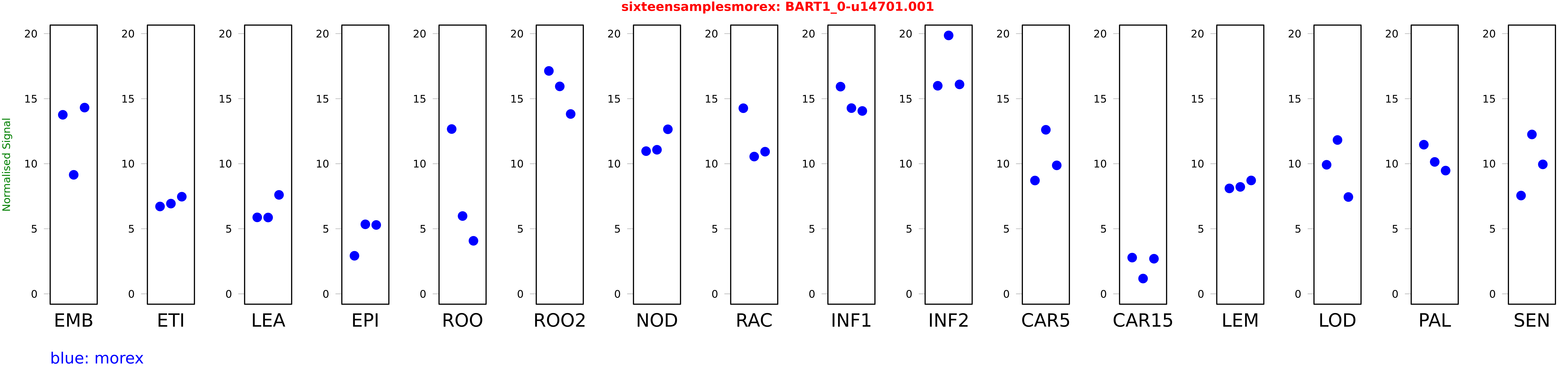 These TPM values were generated by using the RNA-seq data from a 16-tissue experiment in Morex (published here) were calculated using Salmon (version Salmon-0.8.2) using BaRTv1.0-QUASI as the reference transcript dataset. Click here for more information about the RNA-seq experiment and materials