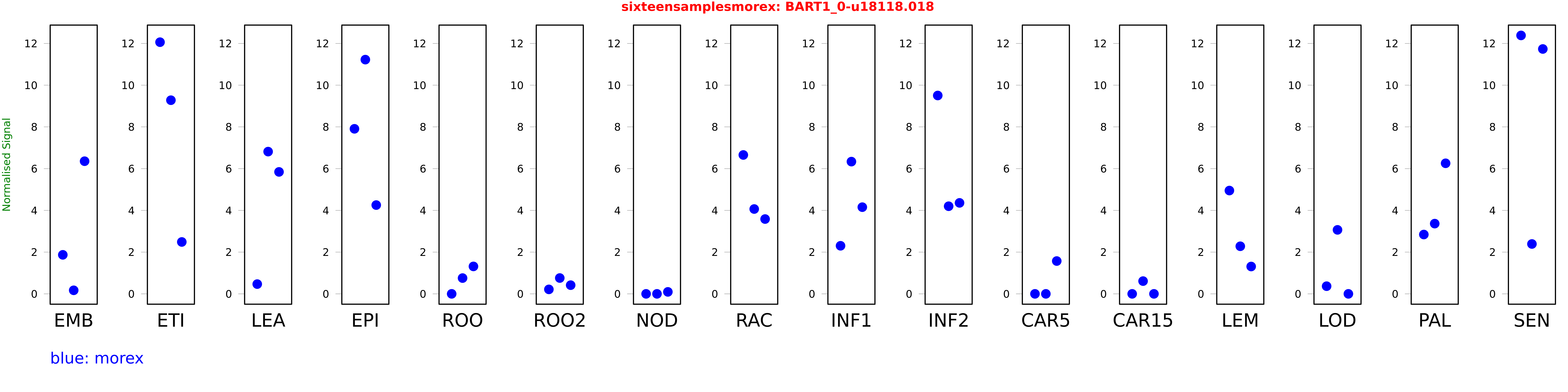 These TPM values were generated by using the RNA-seq data from a 16-tissue experiment in Morex (published here) were calculated using Salmon (version Salmon-0.8.2) using BaRTv1.0-QUASI as the reference transcript dataset. Click here for more information about the RNA-seq experiment and materials