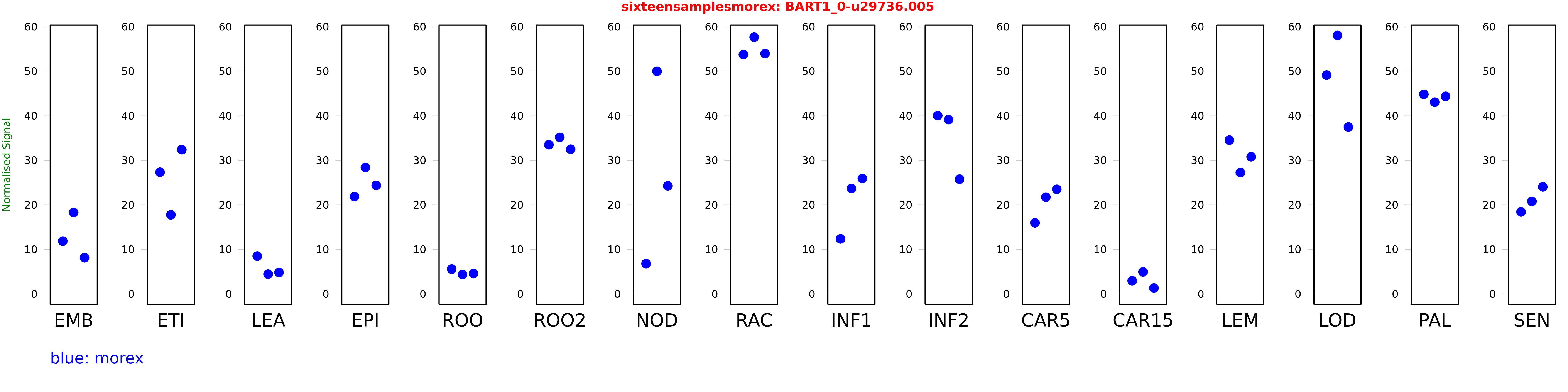 These TPM values were generated by using the RNA-seq data from a 16-tissue experiment in Morex (published here) were calculated using Salmon (version Salmon-0.8.2) using BaRTv1.0-QUASI as the reference transcript dataset. Click here for more information about the RNA-seq experiment and materials