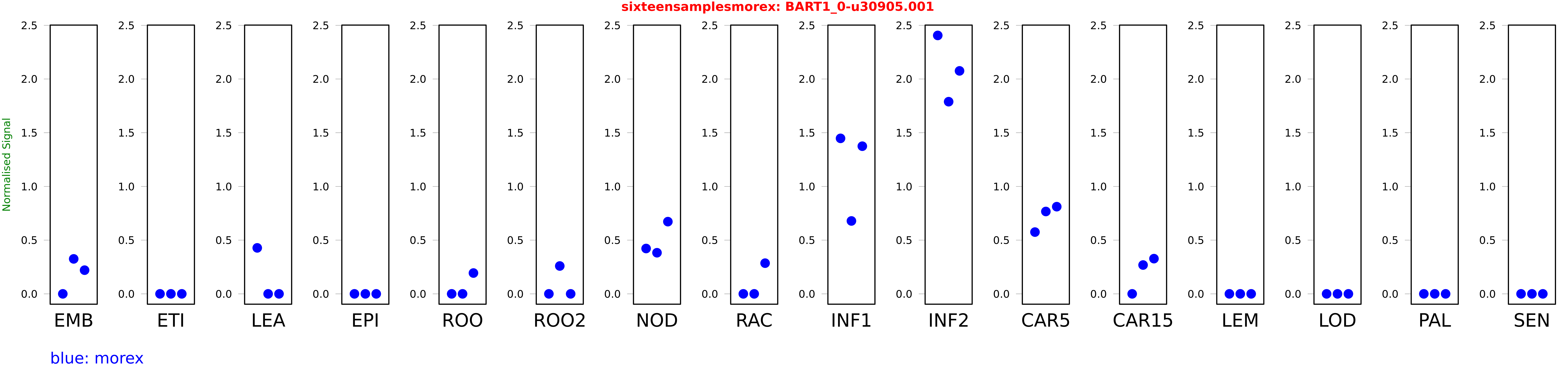These TPM values were generated by using the RNA-seq data from a 16-tissue experiment in Morex (published here) were calculated using Salmon (version Salmon-0.8.2) using BaRTv1.0-QUASI as the reference transcript dataset. Click here for more information about the RNA-seq experiment and materials