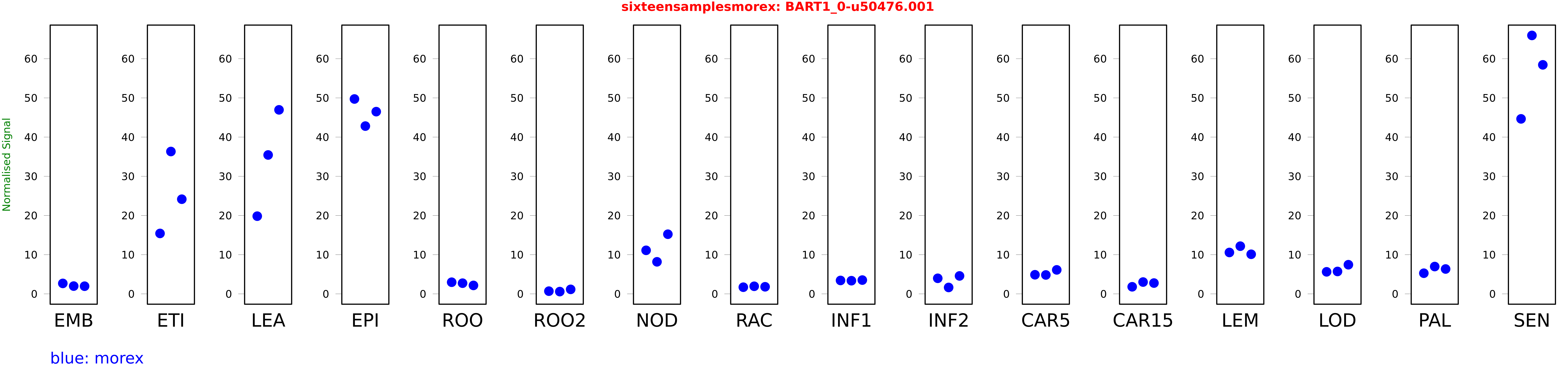 These TPM values were generated by using the RNA-seq data from a 16-tissue experiment in Morex (published here) were calculated using Salmon (version Salmon-0.8.2) using BaRTv1.0-QUASI as the reference transcript dataset. Click here for more information about the RNA-seq experiment and materials