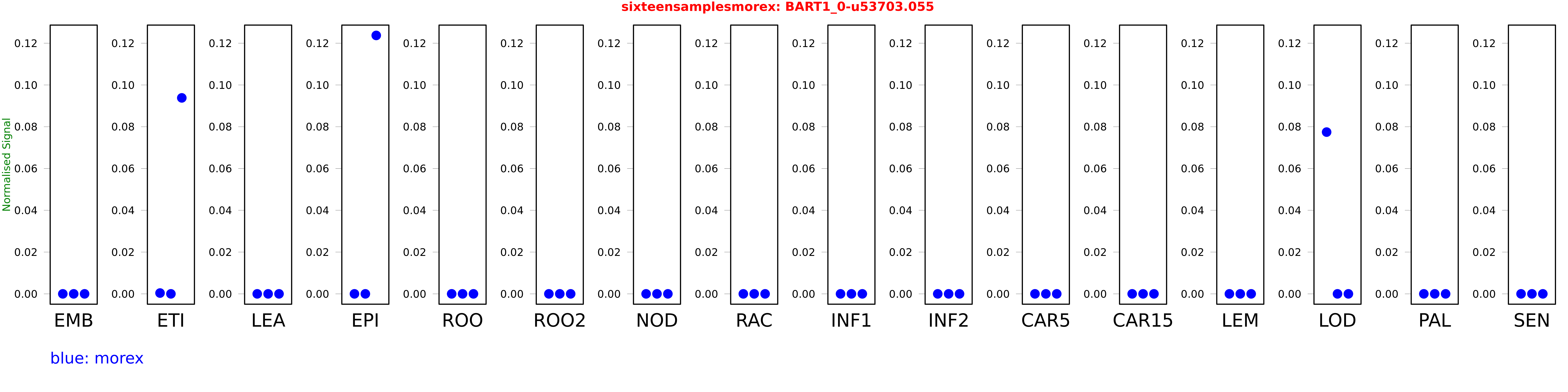 These TPM values were generated by using the RNA-seq data from a 16-tissue experiment in Morex (published here) were calculated using Salmon (version Salmon-0.8.2) using BaRTv1.0-QUASI as the reference transcript dataset. Click here for more information about the RNA-seq experiment and materials