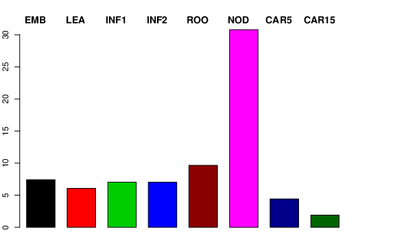 | NOD | Developing tillers at six leaf stage, 3rd internode | 8.37625 | 10.5015 | 11.2602 | 30.7946 |