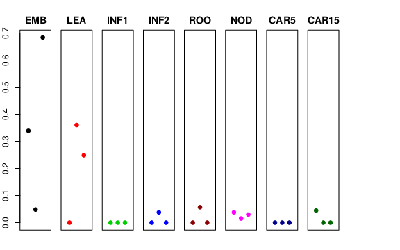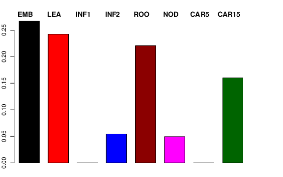 | ROO | Roots from the seedlings (10 cm shoot stage) | 0 | 0.0567384 | 0 | 0.220786 |