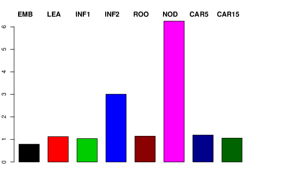 | ROO | Roots from the seedlings (10 cm shoot stage) | 1.37717 | 0.766008 | 2.34533 | 1.1431 |