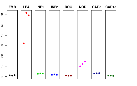 | ROO | Roots from the seedlings (10 cm shoot stage) | 1.08357 | 0.805515 | 0.820433 | 1.07047 |