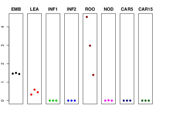 | ROO | Roots from the seedlings (10 cm shoot stage) | 4.53868 | 2.97927 | 1.39251 | 3.35755 |