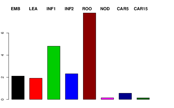 | ROO | Roots from the seedlings (10 cm shoot stage) | 7.7427 | 7.0423 | 7.35916 | 7.80674 |