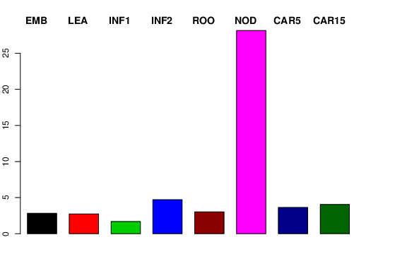 | ROO | Roots from the seedlings (10 cm shoot stage) | 4.32078 | 1.58776 | 2.02381 | 3.01411 |