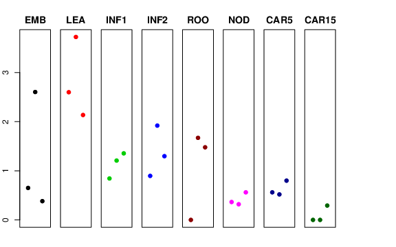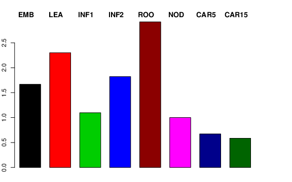 | ROO | Roots from the seedlings (10 cm shoot stage) | 0 | 1.67108 | 1.47833 | 2.92117 |
