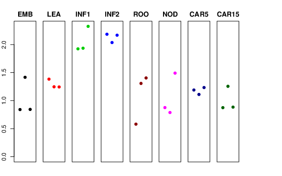 | ROO | Roots from the seedlings (10 cm shoot stage) | 0.580696 | 1.30705 | 1.40471 | 1.3145 |