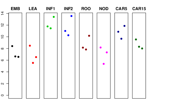 | NOD | Developing tillers at six leaf stage, 3rd internode | 8.17037 | 5.3712 | 7.3341 | 15.6877 |