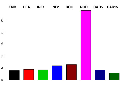 | NOD | Developing tillers at six leaf stage, 3rd internode | 9.24357 | 10.1204 | 12.6398 | 29.0146 |