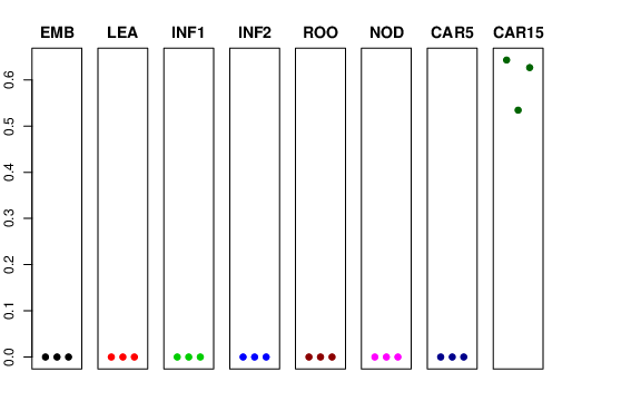 | ROO | Roots from the seedlings (10 cm shoot stage) | 0 | 0 | 0 | 0 |