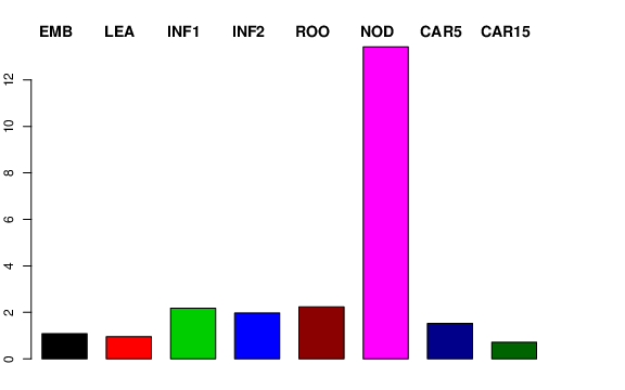 | ROO | Roots from the seedlings (10 cm shoot stage) | 4.66269 | 1.44648 | 1.00445 | 2.23101 |