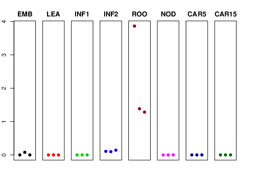 | ROO | Roots from the seedlings (10 cm shoot stage) | 3.86421 | 1.38381 | 1.28434 | 2.36221 |