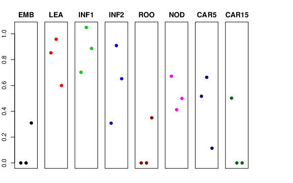 | INF2 | Developing inflorescences (1-1.5 cm) | 0.307713 | 0.909314 | 0.652479 | 0.846049 |