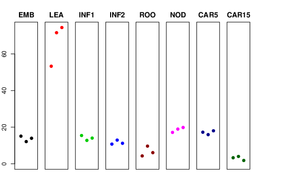 | ROO | Roots from the seedlings (10 cm shoot stage) | 4.31158 | 9.67354 | 6.09841 | 0 |
