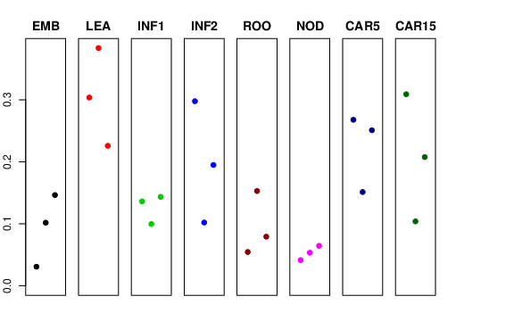 | ROO | Roots from the seedlings (10 cm shoot stage) | 0.0545468 | 0.152974 | 0.0792976 | 0.139186 |