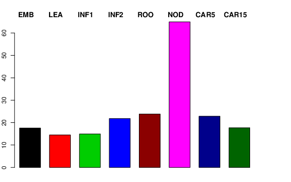 | NOD | Developing tillers at six leaf stage, 3rd internode | 21.696 | 20.1983 | 18.5054 | 64.9821 |