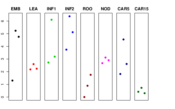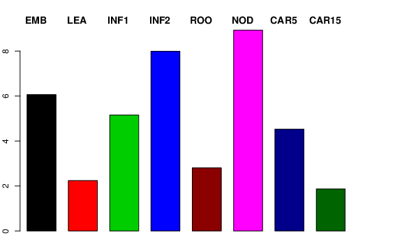 | ROO | Roots from the seedlings (10 cm shoot stage) | 0 | 0.891009 | 1.75647 | 2.8049 |