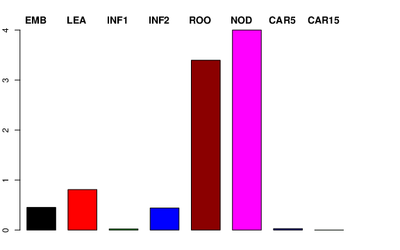 | ROO | Roots from the seedlings (10 cm shoot stage) | 2.01251 | 3.07483 | 3.12235 | 3.39645 |