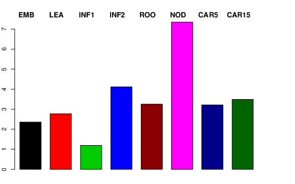 | ROO | Roots from the seedlings (10 cm shoot stage) | 3.80079 | 3.62678 | 3.73975 | 3.24968 |