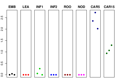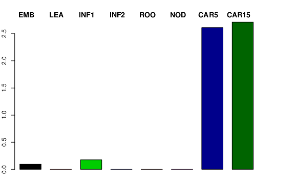 | ROO | Roots from the seedlings (10 cm shoot stage) | 0 | 0 | 0 | 0 |