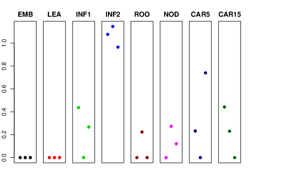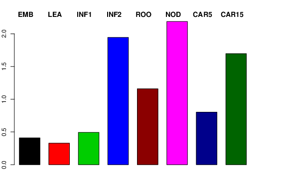 | ROO | Roots from the seedlings (10 cm shoot stage) | 0 | 0.22356 | 0 | 1.15895 |