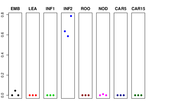 | ROO | Roots from the seedlings (10 cm shoot stage) | 0 | 0 | 0 | 0 |