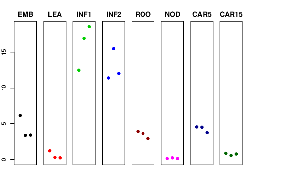 | ROO | Roots from the seedlings (10 cm shoot stage) | 3.89481 | 3.60111 | 2.91625 | 5.07477 |