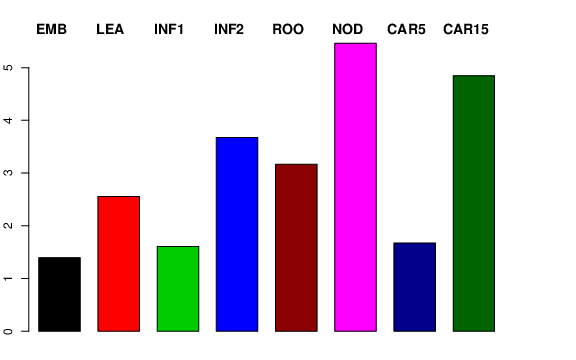 | ROO | Roots from the seedlings (10 cm shoot stage) | 0 | 3.50558 | 4.07144 | 3.16551 |