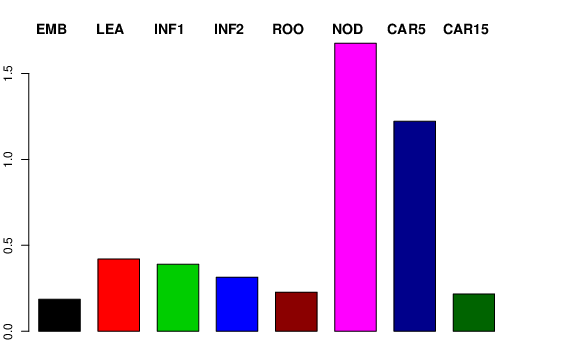 | CAR15 | Developing grain, bracts removed (15 DPA) | 0.140688 | 0.030191 | 0.0821507 | 0.216209 |