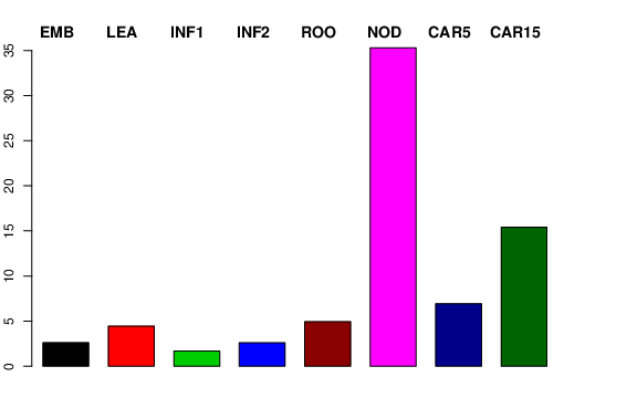 | ROO | Roots from the seedlings (10 cm shoot stage) | 3.68052 | 3.6036 | 3.87753 | 4.93958 |