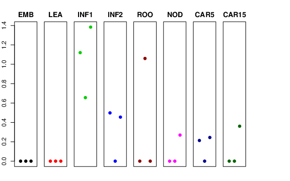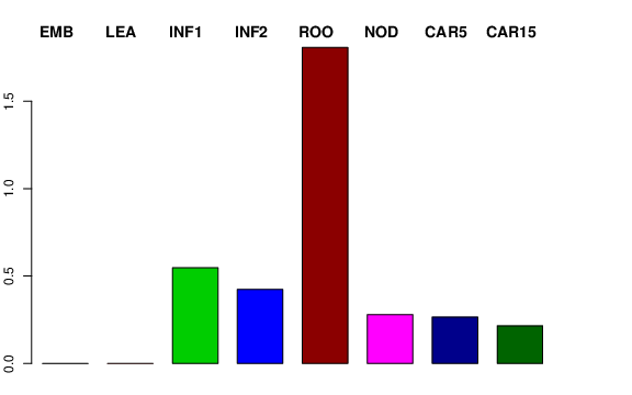 | ROO | Roots from the seedlings (10 cm shoot stage) | 0 | 1.06001 | 0 | 1.80845 |