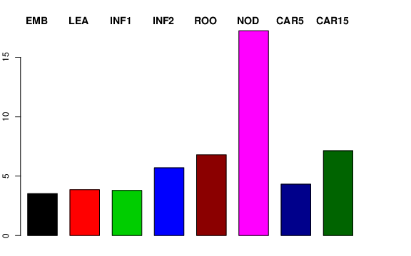 | NOD | Developing tillers at six leaf stage, 3rd internode | 4.467 | 6.63534 | 8.10517 | 17.2252 |