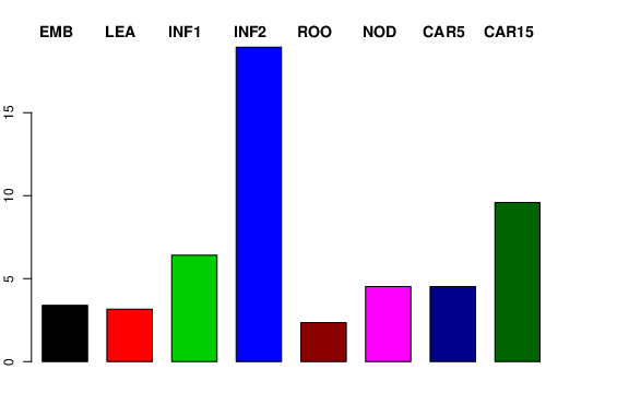 | ROO | Roots from the seedlings (10 cm shoot stage) | 0.256008 | 4.22701 | 4.42351 | 2.34864 |