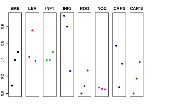 | ROO | Roots from the seedlings (10 cm shoot stage) | 0 | 0.0872249 | 0.274442 | 0.0848558 |
