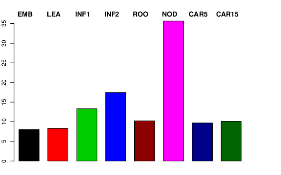 | NOD | Developing tillers at six leaf stage, 3rd internode | 8.40766 | 13.0419 | 13.7657 | 35.6505 |