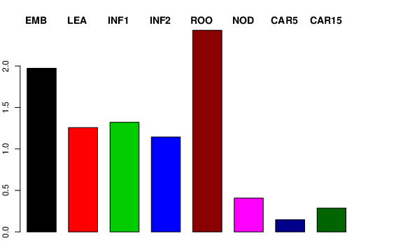 | ROO | Roots from the seedlings (10 cm shoot stage) | 2.01581 | 2.46798 | 0 | 2.43131 |