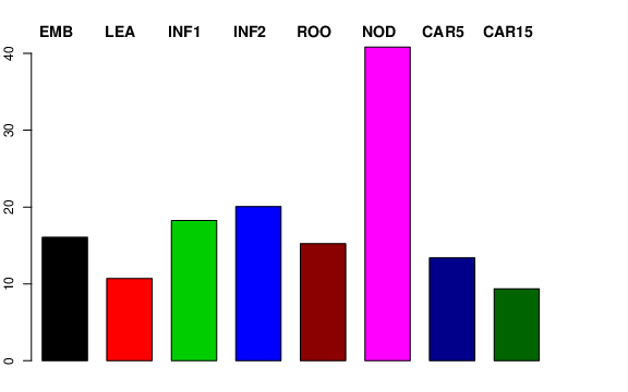 | NOD | Developing tillers at six leaf stage, 3rd internode | 12.4631 | 12.2953 | 13.4735 | 40.8298 |