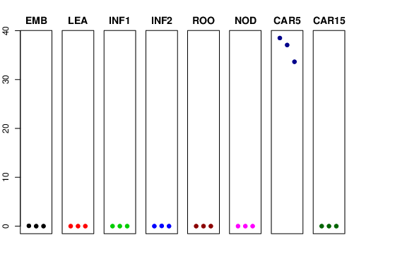 | ROO | Roots from the seedlings (10 cm shoot stage) | 0 | 0 | 0 | 0 |