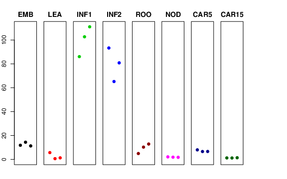 | ROO | Roots from the seedlings (10 cm shoot stage) | 4.88542 | 10.2692 | 12.8431 | 10.3734 |