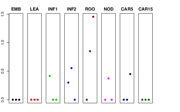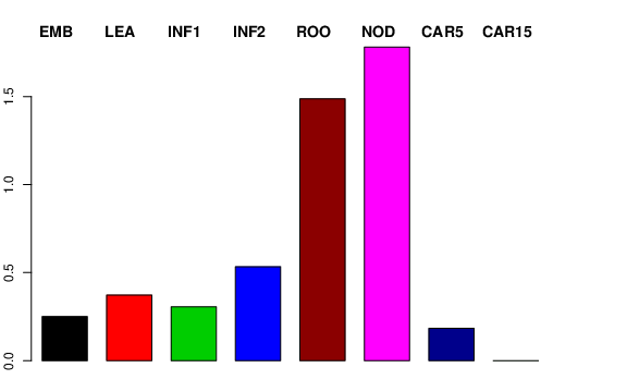 | ROO | Roots from the seedlings (10 cm shoot stage) | 0 | 0.851191 | 1.45372 | 1.48789 |
