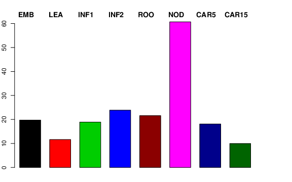 | NOD | Developing tillers at six leaf stage, 3rd internode | 14.9639 | 21.9069 | 30.0624 | 60.6962 |