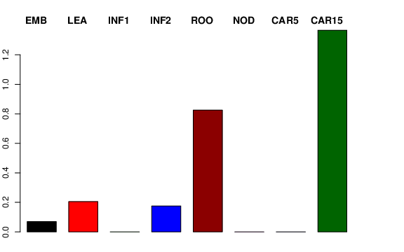 | INF1 | Young developing inflorescences (5mm) | 4.50333e-06 | 0 | 0 | 2.81379e-06 |