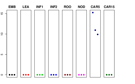 | ROO | Roots from the seedlings (10 cm shoot stage) | 0 | 0 | 0 | 0 |